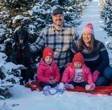 mom (Cassie), dad (Justin), big sister (Lily), and dog (Sirius)